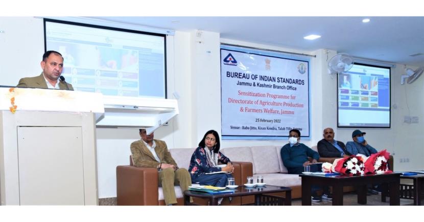 JAMMU: Directorate of Agriculture Production & Farmers Welfare, Jammu in collaboration with Bureau of Indian Standards (BIS), J&K Branch Office on Friday organised one day Awareness/Sensitization Programme for officers and farmers here at Kisan Kendra, Talab Tillo, with the focus on BIS Activities & Quality Control Parameters relevant to Agriculture sector.