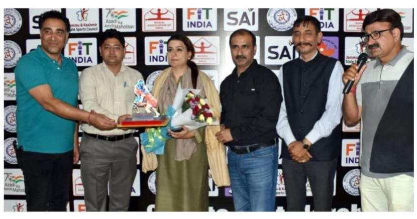 Dr Langer also felicitated and honoured Secretary Sports Council Nuzhat Gul for her extraordinary leadership and contribution for promotion and propagation of sports in J&K.