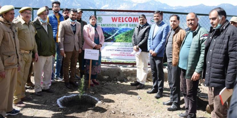KISHTWAR: To mark the International Women’s Day celebration, a plantation drive was organised today by Kishtwar Development Authority and Forest Department in Collaboration with District Administration /PRIs here at Maiparan Park on the outskirts of Kishtwar town near Village Indra Nagar.