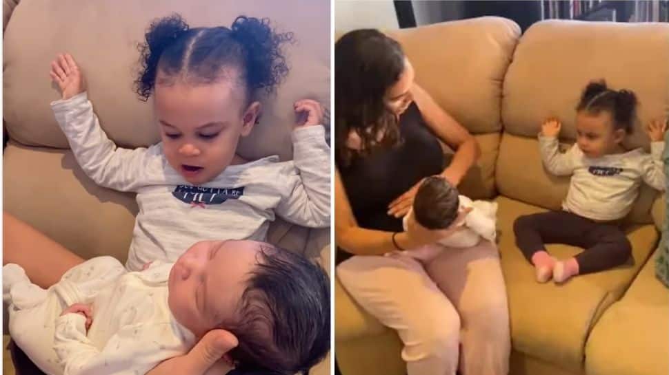 Kids are the most honest beings on the planet. Their innocence and unfiltered reactions are not only adorable but to die for. This very element of their existence makes them extremely unpredictab kid had gobe viral on unpredictat. The video starts with the mother holding a baby in her arms and asking toddler to say ‘hello’. The little girl’s reaction on seeing the baby is hilarious and has gone viral on social media the mother can be seen trying to familiarise her daughter with the new addition in the family, her brother, while the father is behind the lens. The little girl can be seen sitting casually on the couch at the start, but as soon as she sees the baby she goes into a defensive mode.