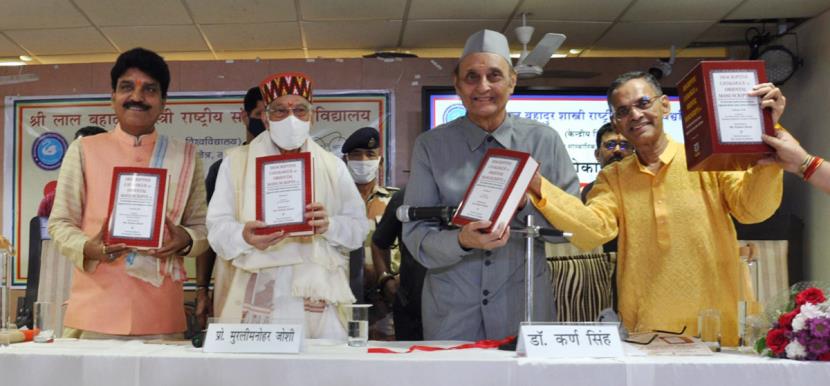 NEW DELHI: Padma Vibhushan awardee, scientist and former Union Minister, Dr Murli Manohar Joshi released the ‘Descriptive Catalogue of Oriental Manuscripts in the Shri Ranbir Sanskrit Research Institute’ (Set of 3 volumes), edited by Padma Vibhushan awardee Dr Karan Singh, during an impressive function at Shri Lal Bahadhur Shastri National Sanskrit University in New Delhi.