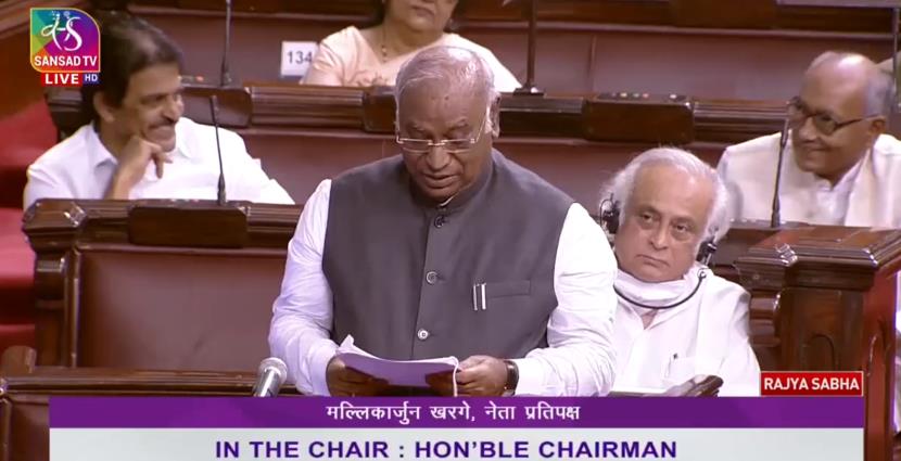 Speaking at Rajya Sabha, Kharge said, “There is a saying in politics that there are often ups and downs but one should never leave the ground. We should keep that in mind while working for the people,” LoP Mallikarjun Kharge in Rajya Sabha