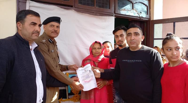 Both Commandant Satish Kumar Shastri, Second in Command, Madhav Chaturvedi and Deputy Commandant, Kuldeep Choudhary handed over the Operational Causality Certificate to the family members of the Martyr.