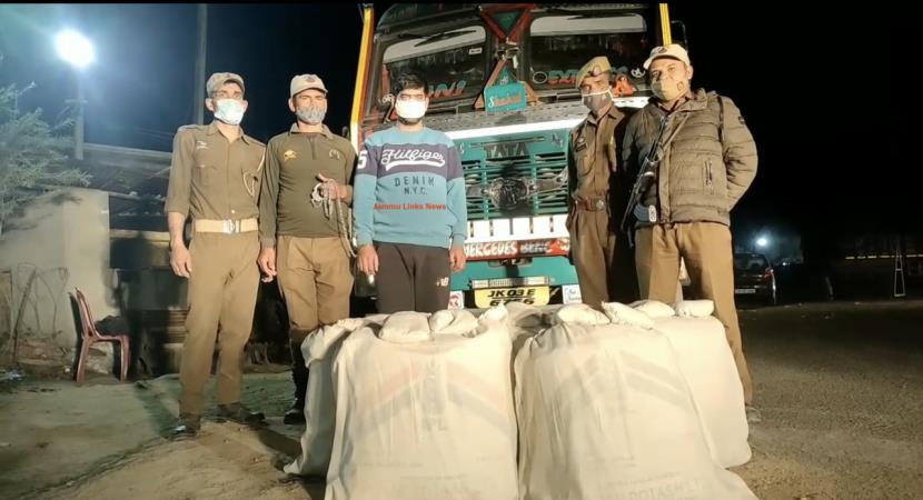 Police said a team of Police Post (PP), Mansar during routine vehicle checking intercepted a truck bearing Registration Number JK03E-6766 at Naka Mansar, Samba.