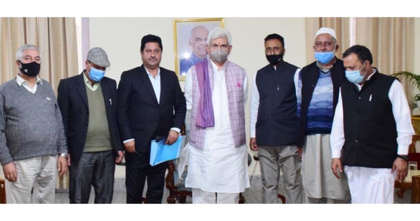 The members of Shahabad Development Forum led by its Chairman, Zahoor Ahmad Malik, apprised the Lt Governor about the issues and demands pertaining to development of Dooru Shahabad, Anantnag.