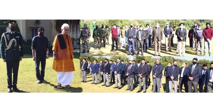 Lieutenant Governor Manoj Sinha along with officers and staff of Raj Bhavan today condoled the sad demise of Chief of Defence Staff General Bipin Rawat, his wife Mrs. Madhulika Rawat, and 11 Armed Forces personnel, who lost their lives in a tragic helicopter crash on 8th December.