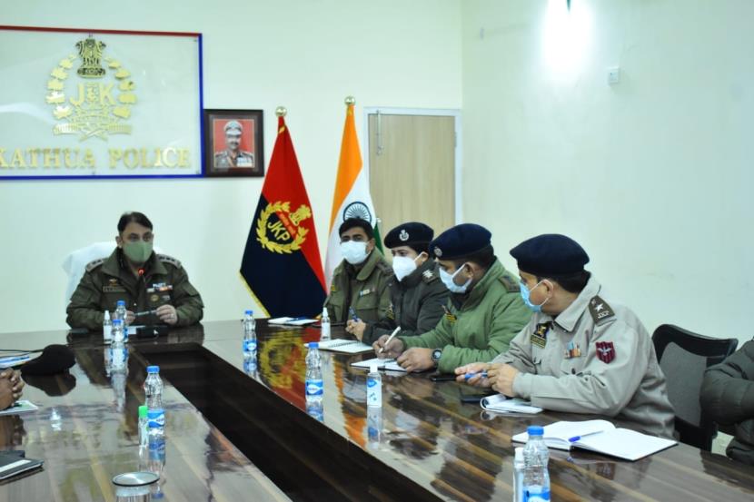 KATHUA: In order to review the general security situation in the district ahead of forthcoming Republic-Day celebrations and Assembly elections in Punjab, SSP Kathua R. C Kotwal chaired a joint security review meeting at DPL Kathua with the officers of all sister agencies including Army, BSF, CRPF, IRP, CID and all SDPO’s of the District Police Kathua.