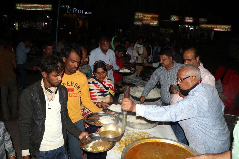 Traders Federation Ware House/ Nehru Market Jammu organized `Langer’ at Jammu Railway Station for migrant labourers fleeing Kashmir after attacks by terrorists.