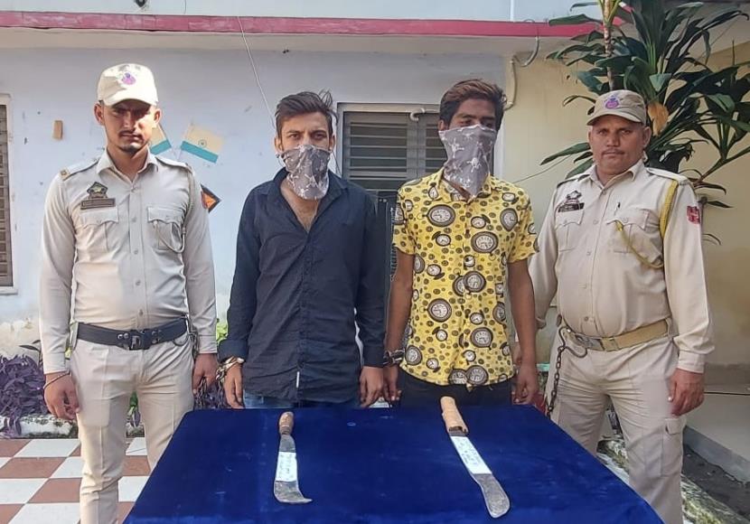 During checking, police team recovered two sharp edged weapons from the possession of the persons and arrested them.